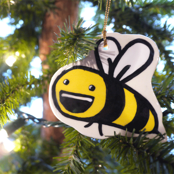 Our Very Own WBJ Bee Hand Painted Ornament made by Heather Lane Pottery in Ada, Michigan.